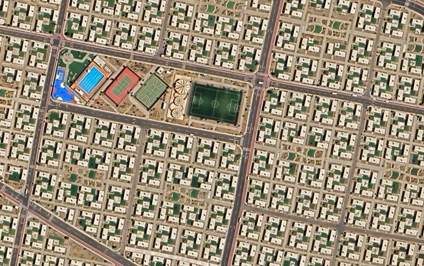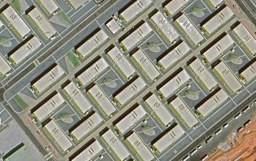 Các dãy nhà một tầng được sắp xếp lặp đi lặp lại - Ảnh: Airbus/CNES/Maxar Technologies/Dezeen