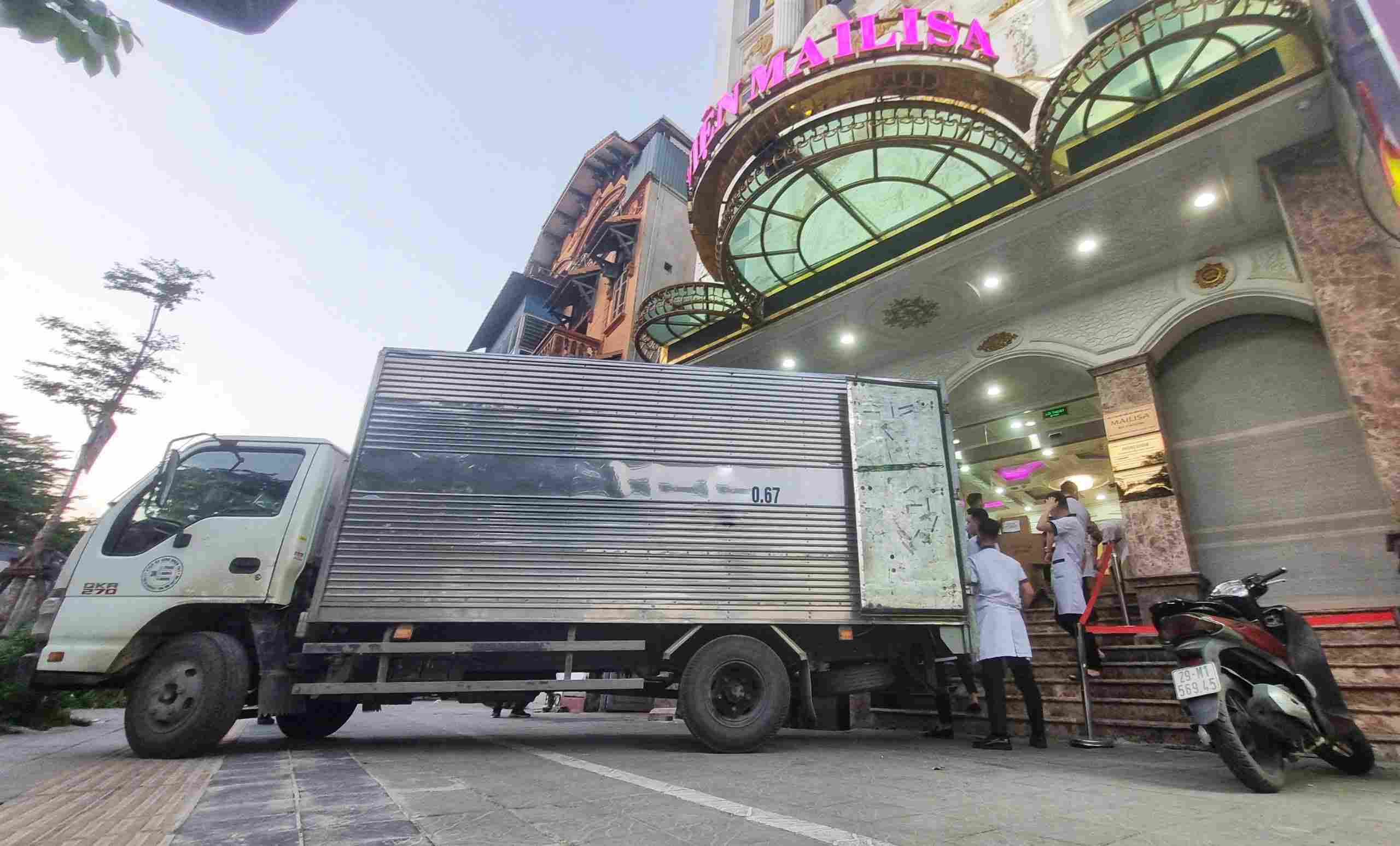 Sau khoảng hơn 5 giờ làm việc bên trong tòa nhà thẩm mỹ viện Mailisa ở Hà Nội, lực lượng công an đã rời khỏi đây cùng nhiều thùng carton.