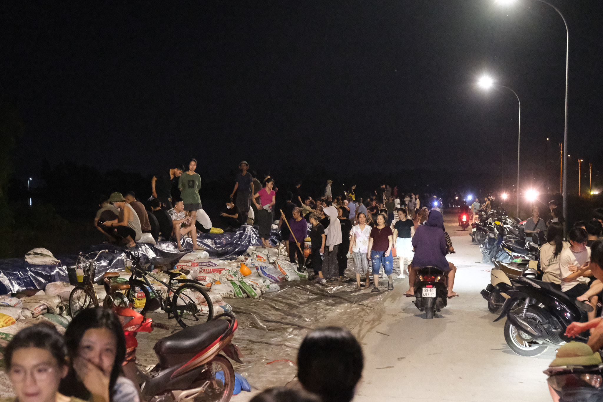 Hàng nghìn người dân và lực lượng quân đội, công an, bảo vệ an ninh trật tự cơ sở đã thức xuyên đêm để gia cố đê khi nước lũ sông Cầu lên cao tại khu vực đê Đẩu Hàn, phường Kinh Bắc, Bắc Ninh.