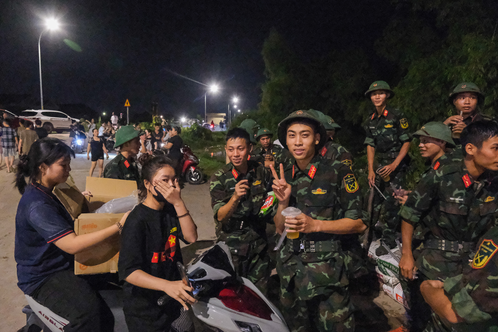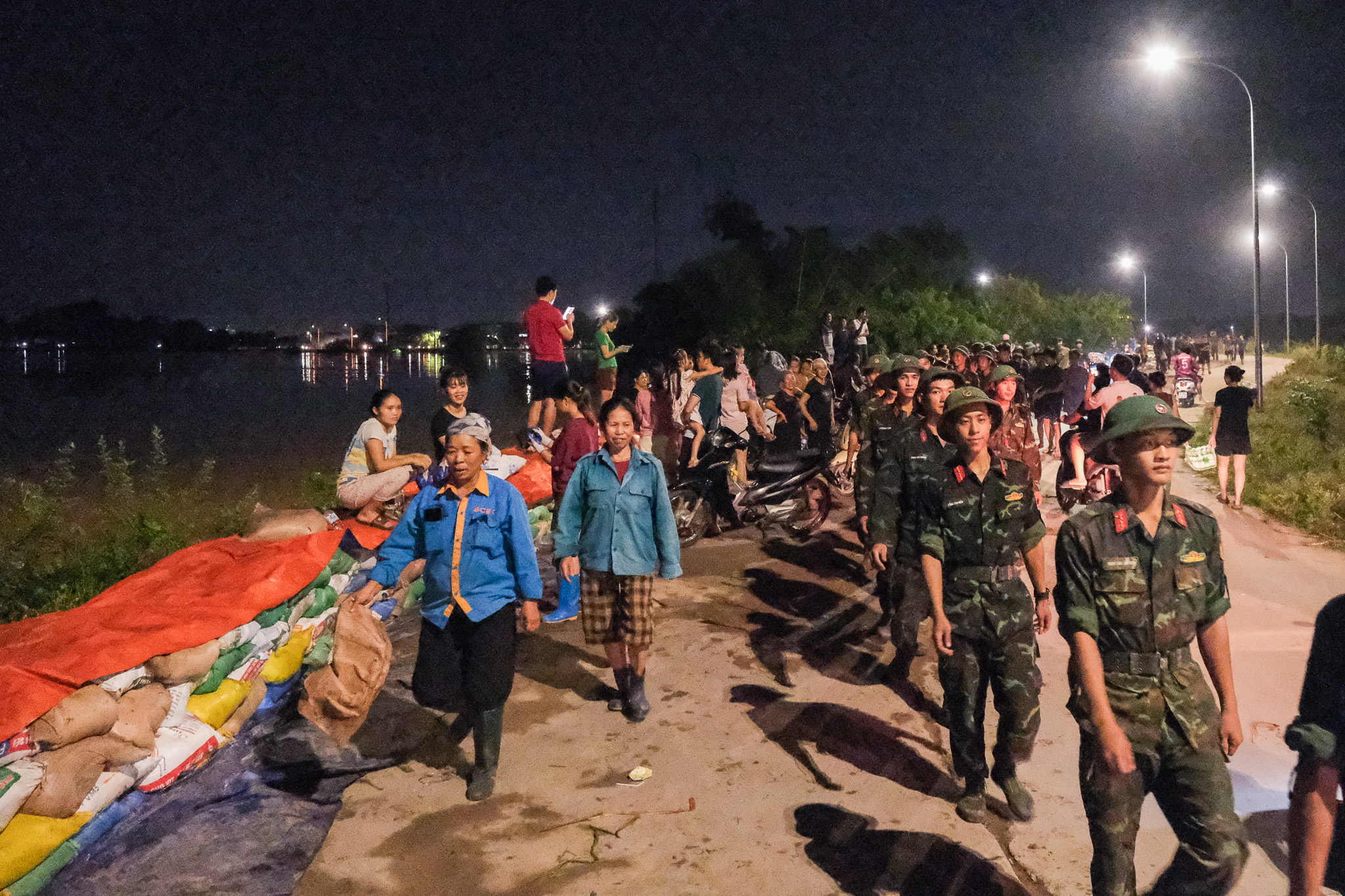 Tối muộn 8-10, lực lượng quân đội, công an, bảo vệ an ninh trật tự cơ sở và hàng nghìn người dân, trong đó có cả người cao tuổi, thanh niên đã tình nguyện gia cố đê khi nước sông Cầu lên cao tại khu vực đê Đẩu Hàn, phường Kinh Bắc, Bắc Ninh.