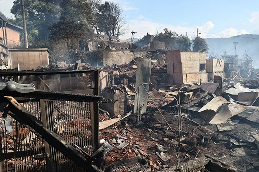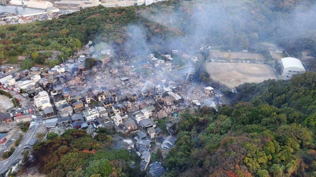 Những hình ảnh được truyền thông Nhật Bản ghi lại cho thấy, nhiều ngôi nhà chỉ còn lại đống đổ nát sau vụ hỏa hoạn, thậm chí ngọn lửa còn lan sang khu vực đồi ở Tsutashima, cách bờ biển Saganoseki khoảng 1,5km.