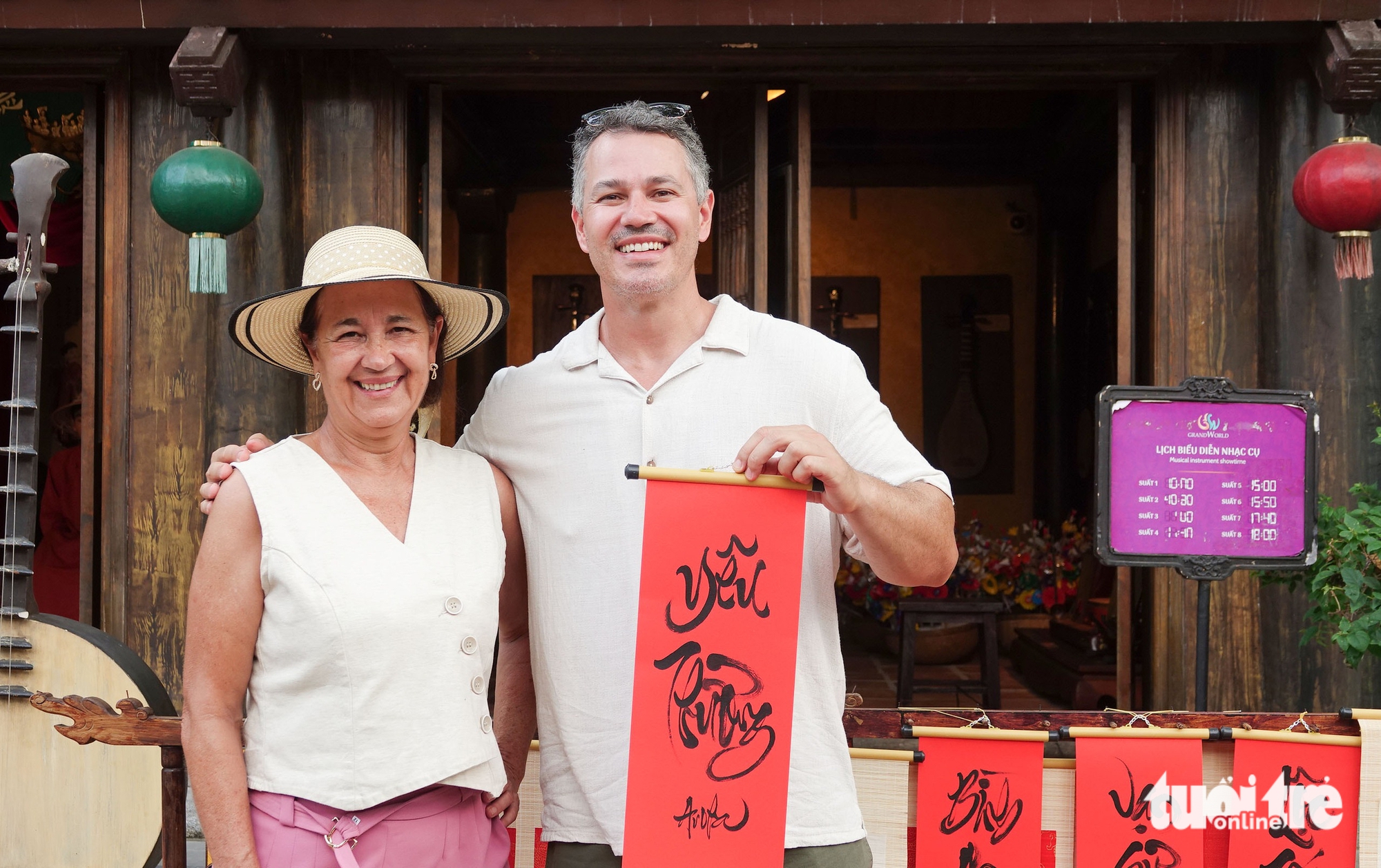 Viết thư pháp, trang phục áo dài truyền thống và các trò chơi dân gian mang đậm chất văn hóa của người Việt trên đảo Phú Quốc (tỉnh An Giang) đã được lòng nhiều vị khách quốc tế đến dịp sát Tết Bính Ngọ 2026.