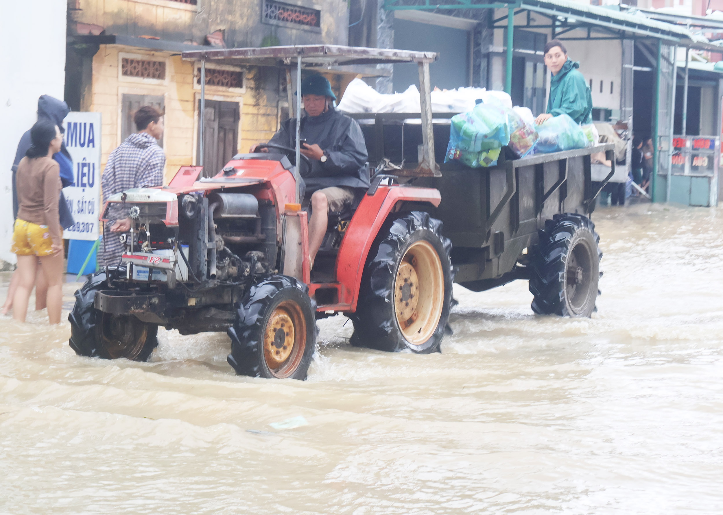 "Xe công nông chở các suất cơm, nước suối, bánh bao, nhu yếu phẩm... đến những đoạn ngập sâu thì dùng ca nô vận chuyển vào vùng lũ tiếp tế dân. Quyết không để người dân phải chịu đói khát", cán bộ xã Tuy Phước nói.