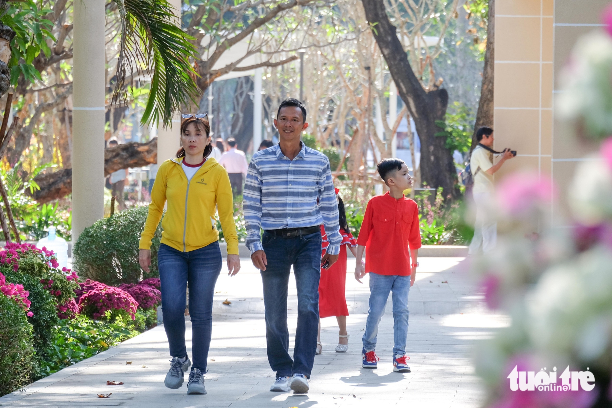 Một gia đình tham quan công viên số 1 Lý Thái Tổ sáng mùng 1 Tết