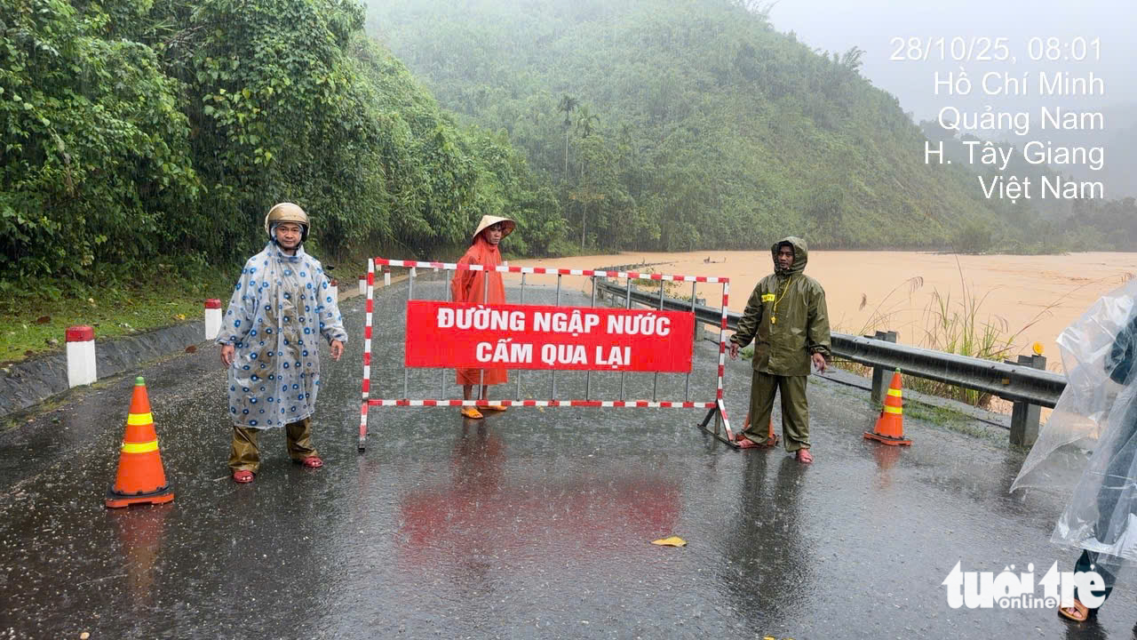 Đường độc đạo ở Ngọc Linh bị sạt hoàn toàn, cô lập 5 ngôi làng. Khu Quản lý đường bộ 3 đóng đường Hồ Chí Minh nhánh Tây do nước ngập sâu.