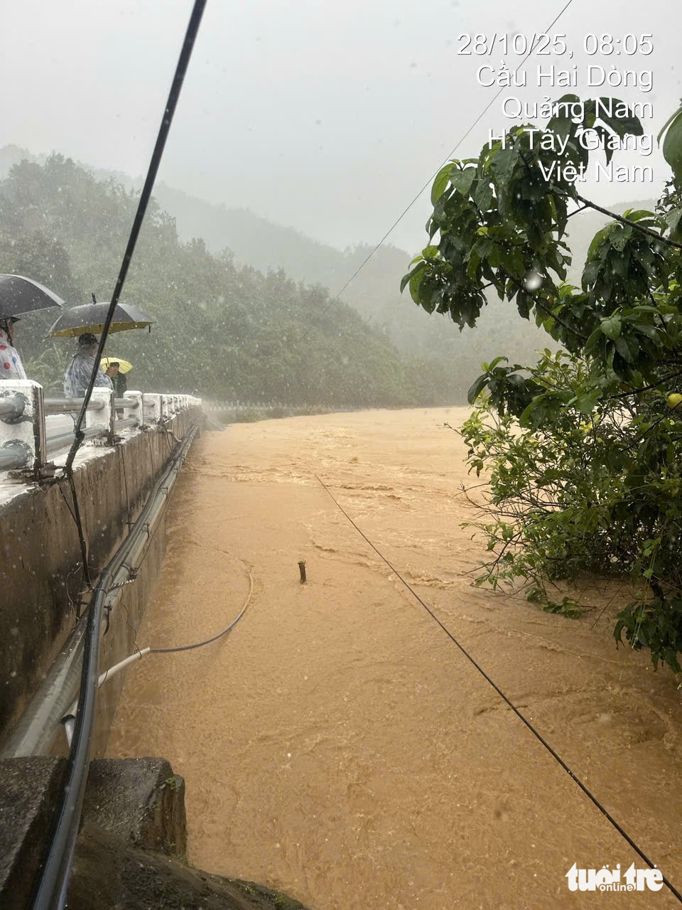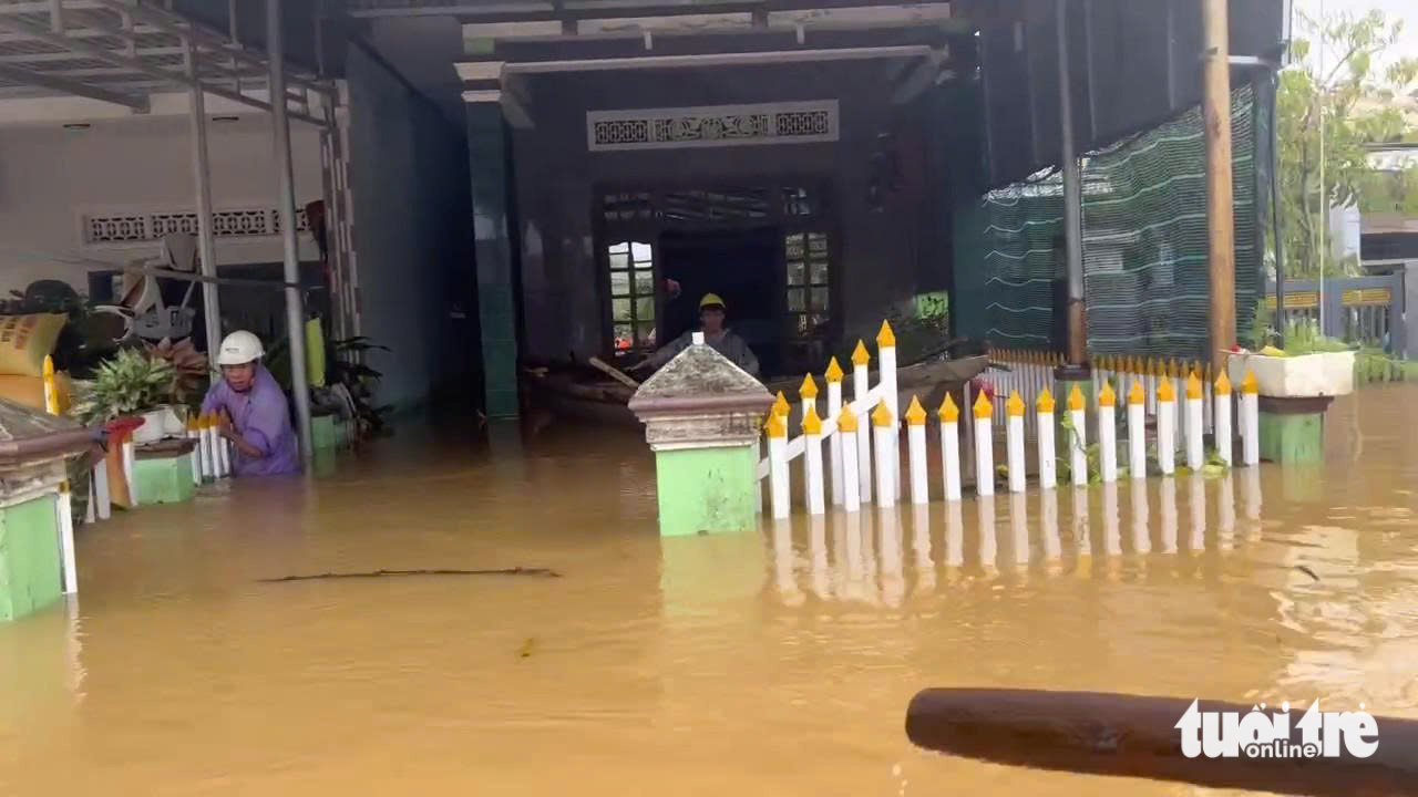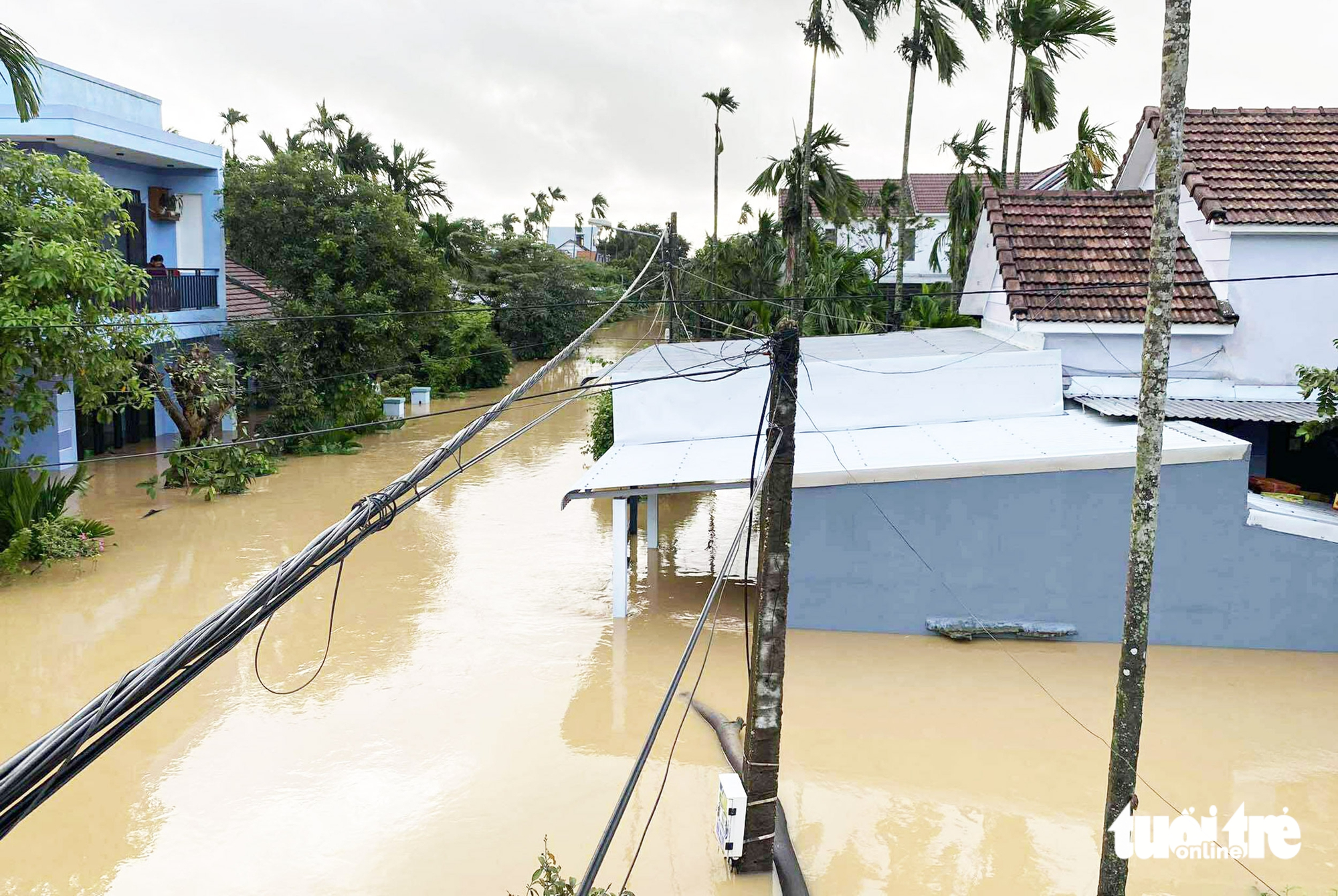 Trao đổi với Tuổi Trẻ Online sáng 28-10, anh Huỳnh Công Tâm (trú tổ dân phố Đông Hà, phường Hội An, TP Đà Nẵng) cho biết hiện khu vực này đang còn ngập rất sâu.
