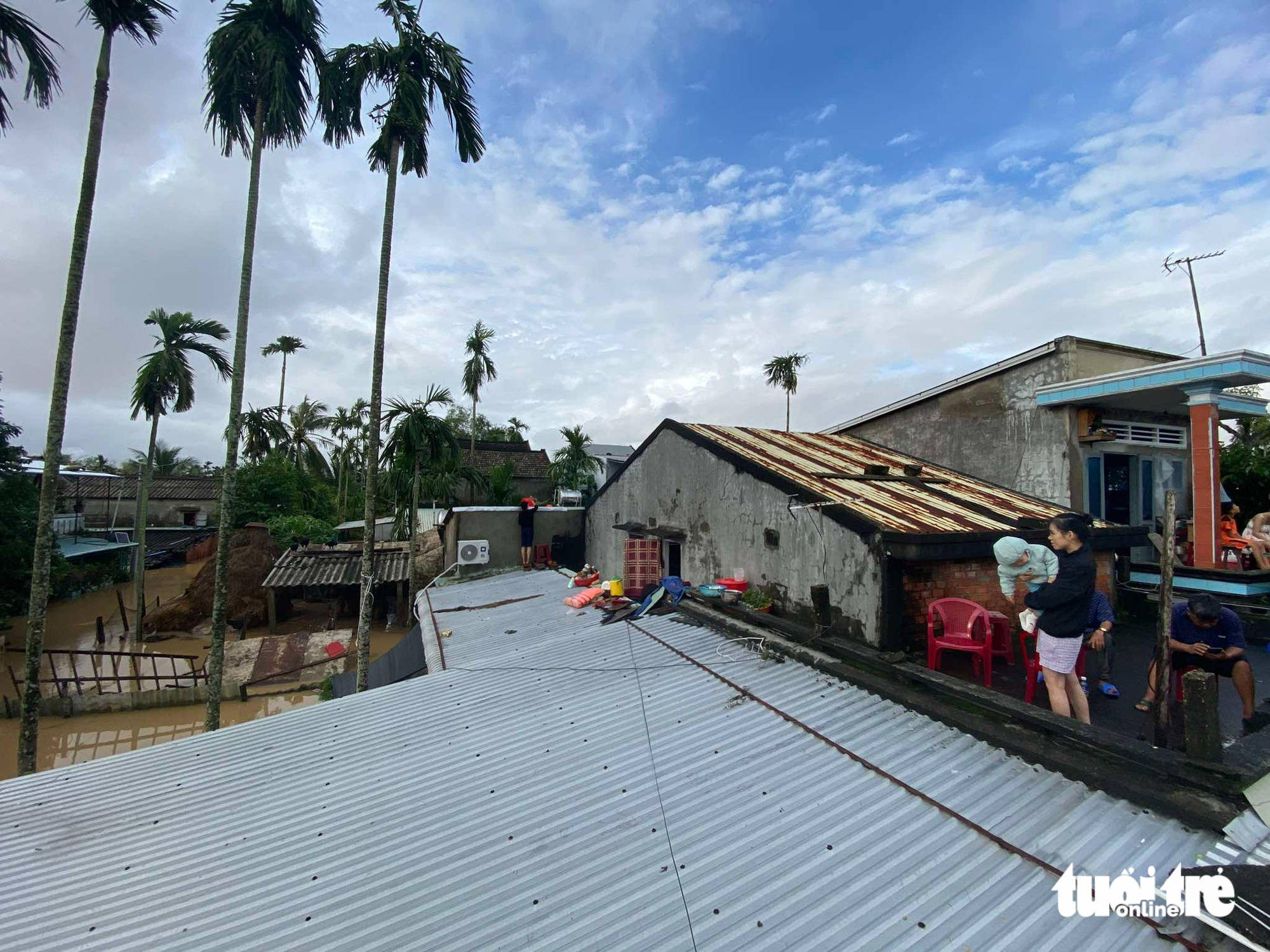 Người dân sinh hoạt trên mái nhà - Ảnh: CÔNG TÂM