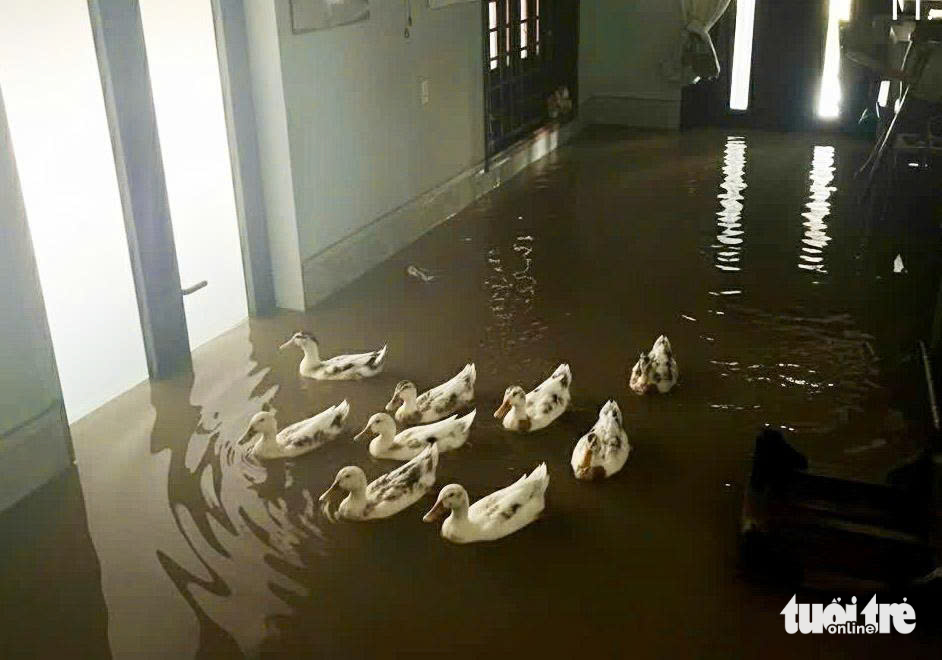 Vịt bơi trong nhà - Ảnh: LÊ TRUNG