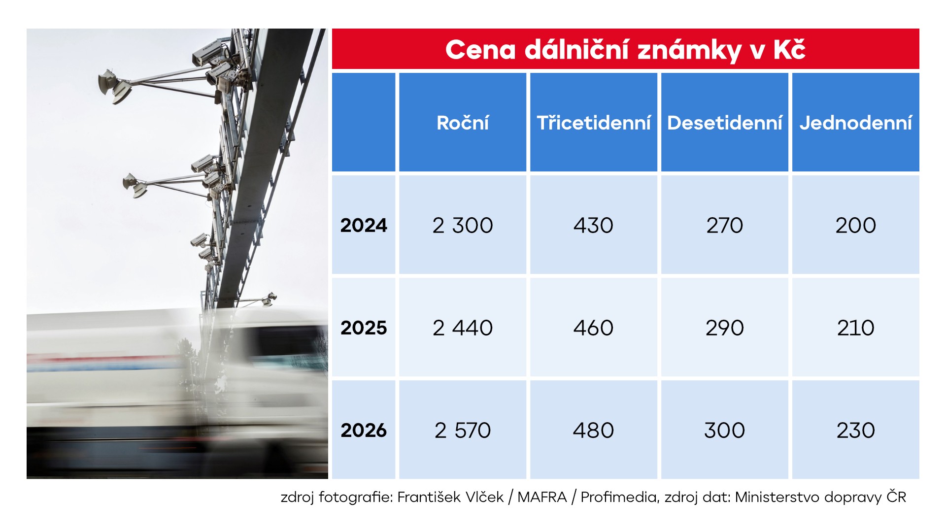 Lạm phát và các đoạn đường cao tốc mới được đưa vào sử dụng lại tiếp tục đẩy giá tem xa lộ điện tử tăng lên – từ ngày 1 tháng 1, tem một năm sẽ tăng thêm 130 korun, tem 30 ngày và tem một ngày tăng 20 korun, còn tem 10 ngày tăng 10 korun. Tuy nhiên, ngay cả trong năm mới các tài xế vẫn có thể đi lại trên xa lộ với mức giá cũ.
