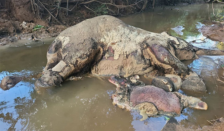 Xác một con voi cái trưởng thành và một voi con mới sinh được phát hiện tại Preah Vihear - Ảnh: KHMER TIMES