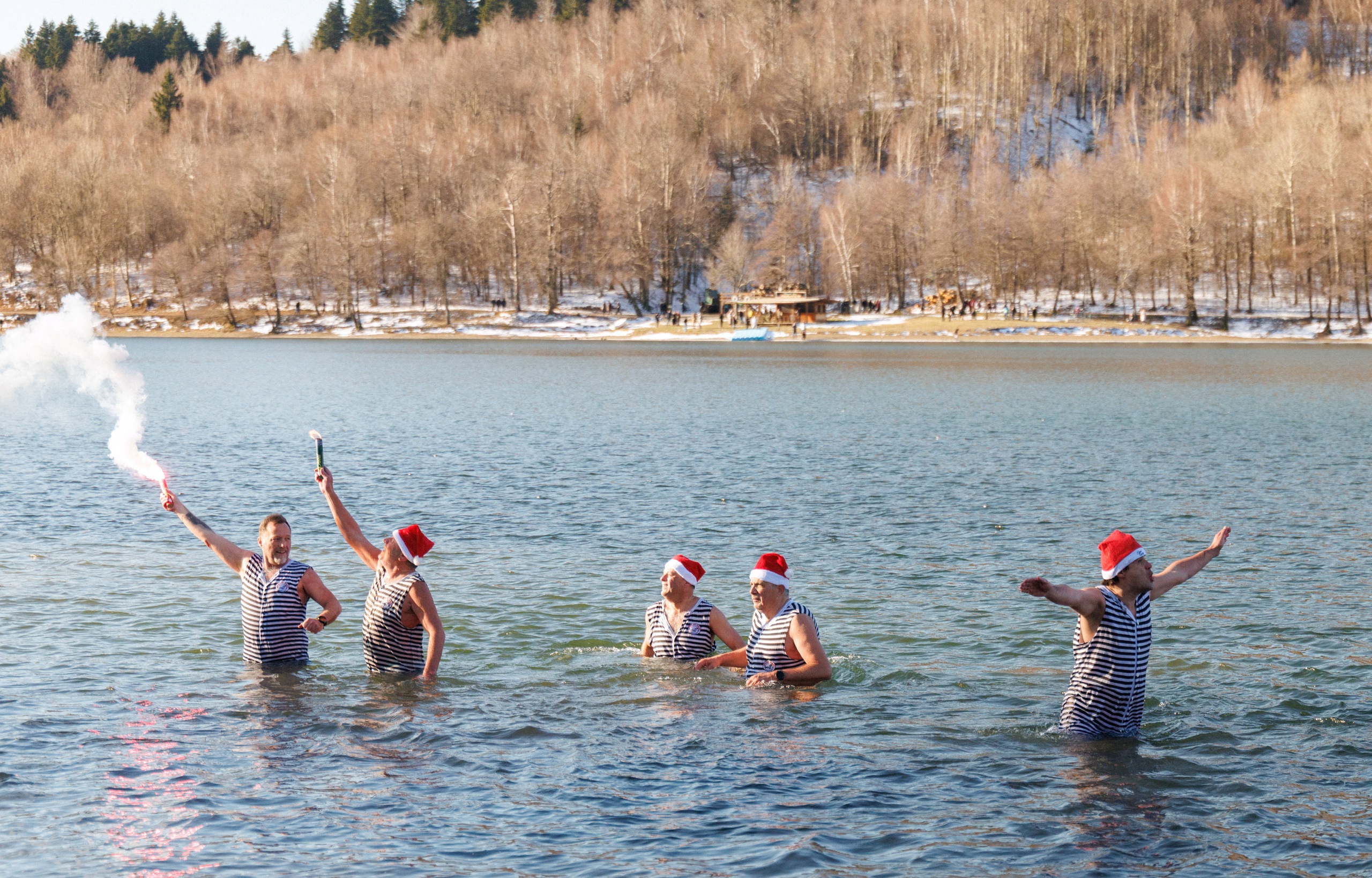 Người dân đón năm mới sớm bên hồ Bajer ở Fuzine, Croatia ngày 31-12-2025 - Ảnh: REUTERS