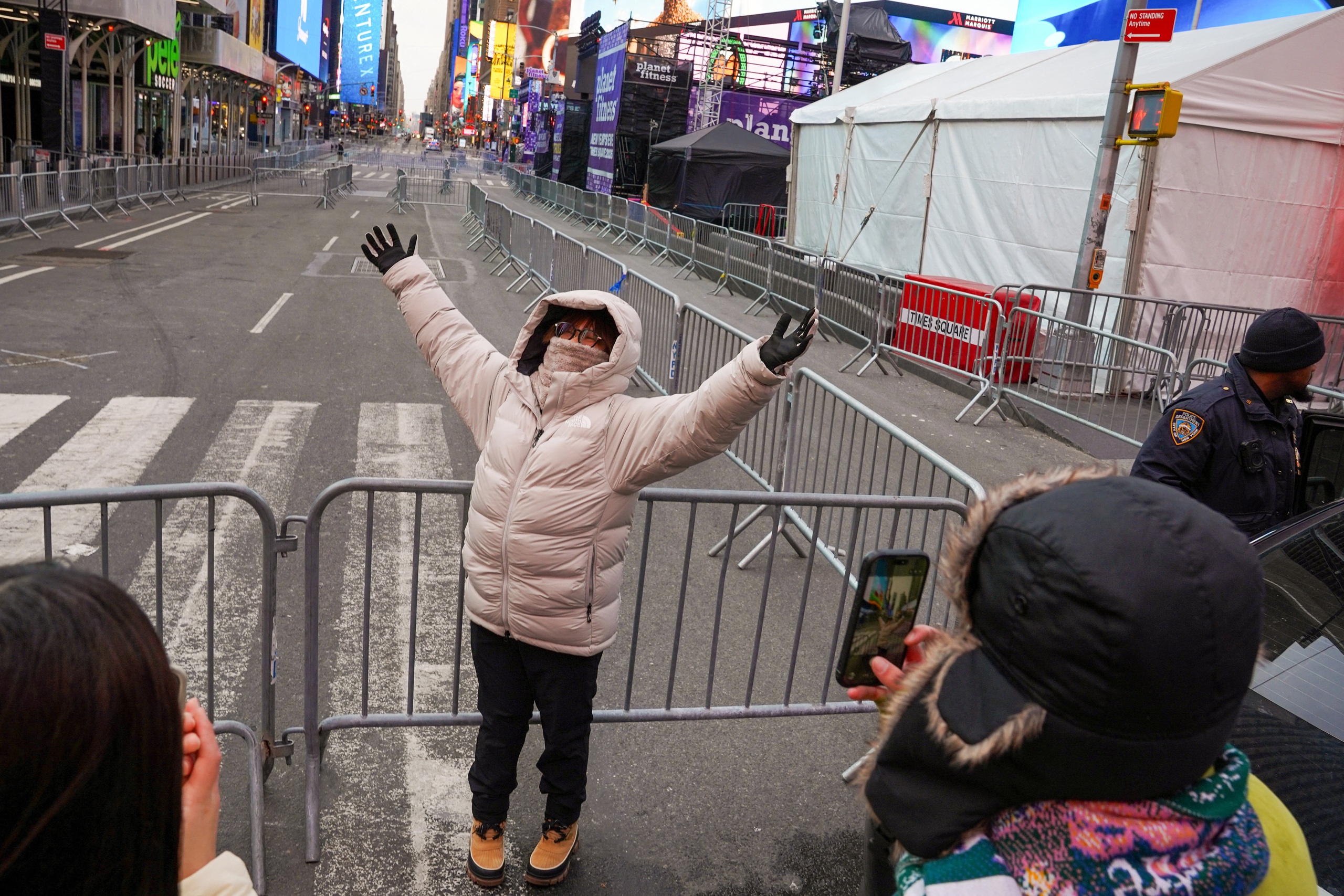 Mọi người tập trung tại lối vào an ninh ở Quảng trường Thời đại trước sự kiện đón năm mới tại quận Manhattan, thành phố New York, Mỹ ngày 31-12 - Ảnh: REUTERS
