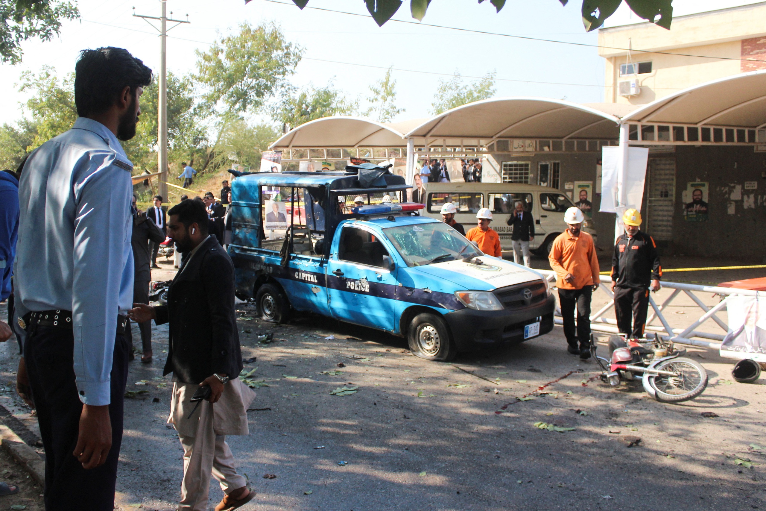 Theo Bộ trưởng Nội vụ Pakistan Mohsin Naqvi, vụ đánh bom diễn ra ngay bên ngoài tòa án Islamabad làm 27 người bị thương, và ít nhất 12 người thiệt mạng.
