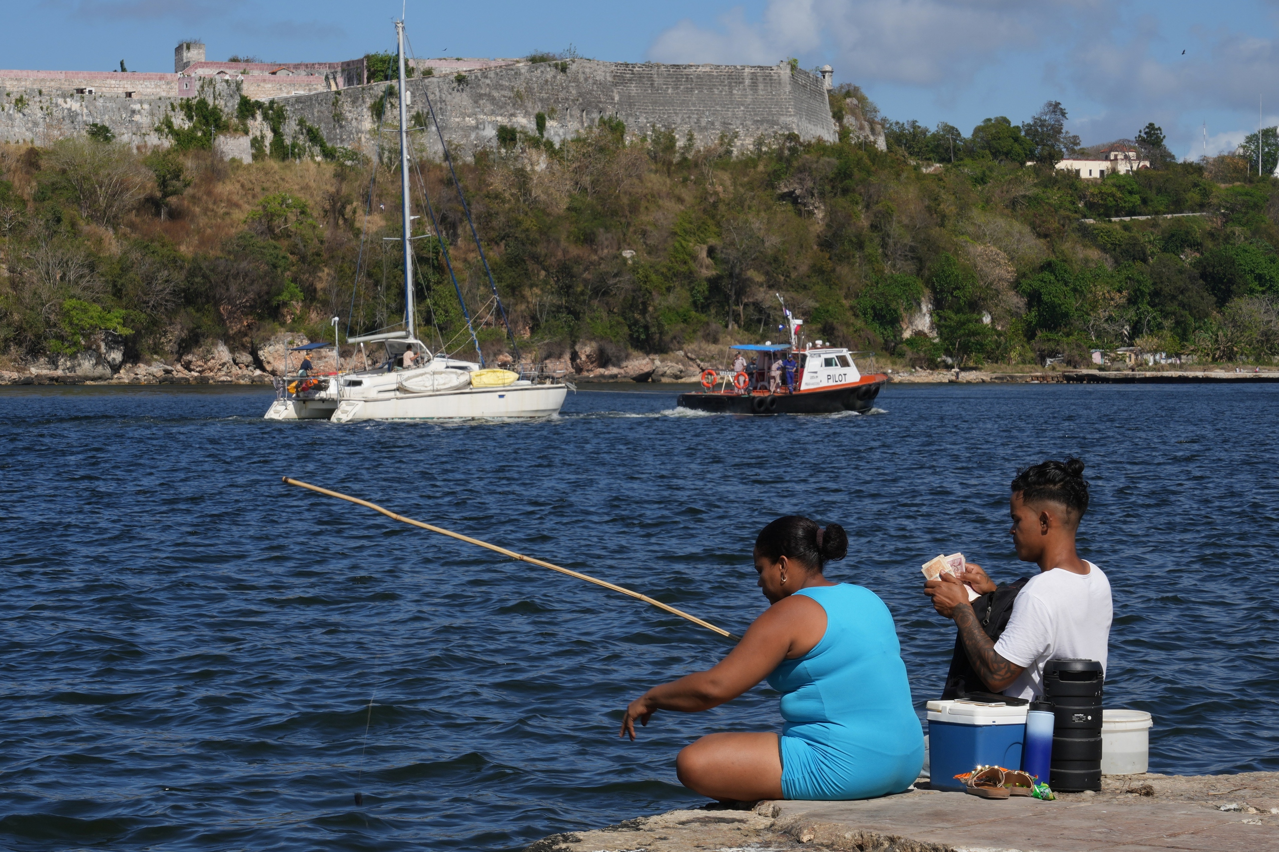 Một trong hai chiếc tàu chở hàng viện trợ đã cập cảng Havana, Cuba - Ảnh: AP