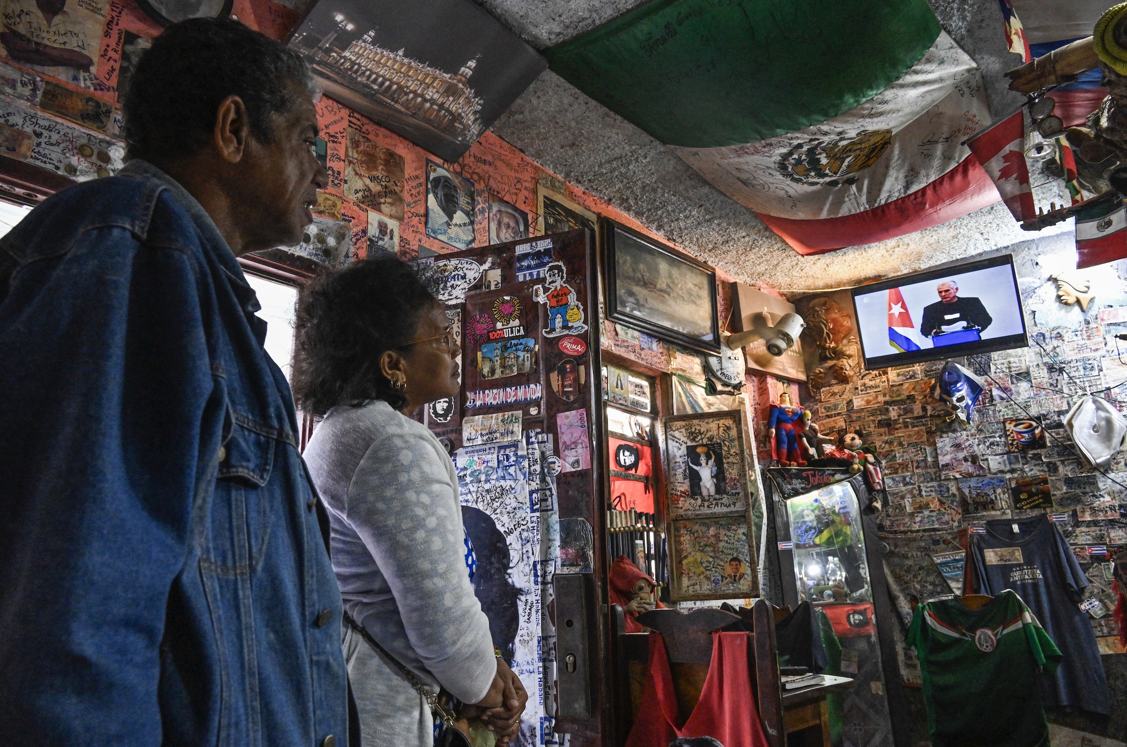 Người dân Cuba theo dõi bài phát biểu của ông Miguel Diaz-Canel trên truyền hình ngày 5-2 - Ảnh: AFP