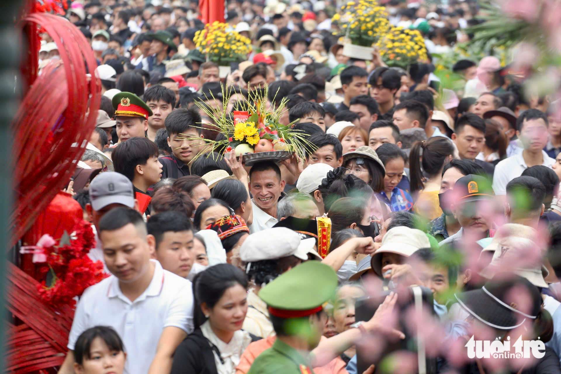 Ban tổ chức tiếp tục bố trí các lực lượng công an, quân đội, đoàn thanh niên từ khu vực gần cổng chính sân trung tâm lễ hội cho tới cổng đền.