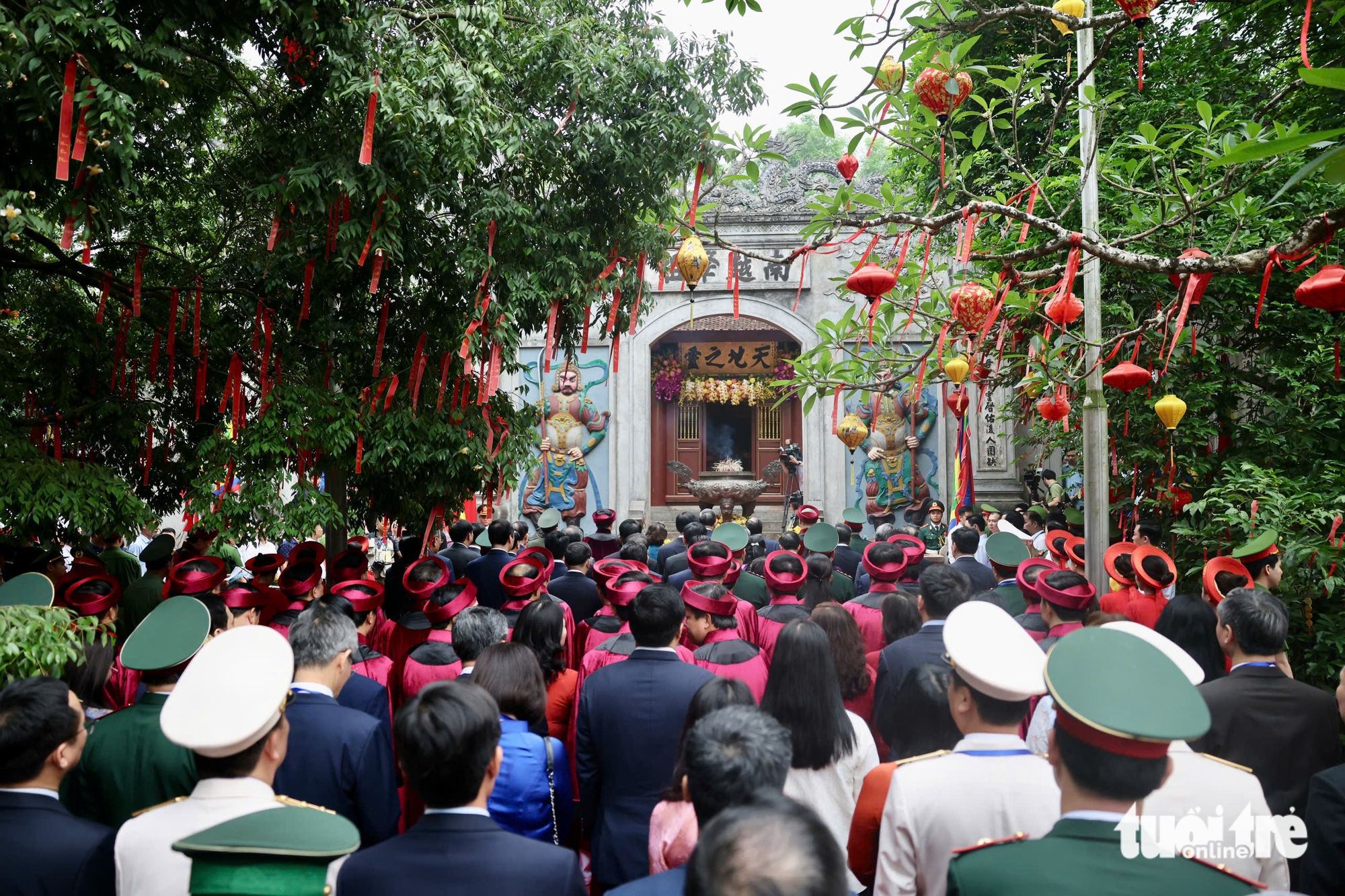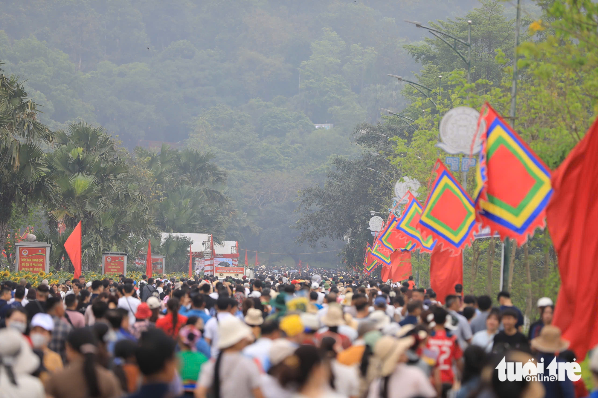 Hàng chục ngàn người dân đã đến Đền Hùng ở Phú Thọ sáng 26-4 (mùng 10-3 âm lịch) để dự lễ giỗ Tổ - Ảnh: CHÍ TUỆ