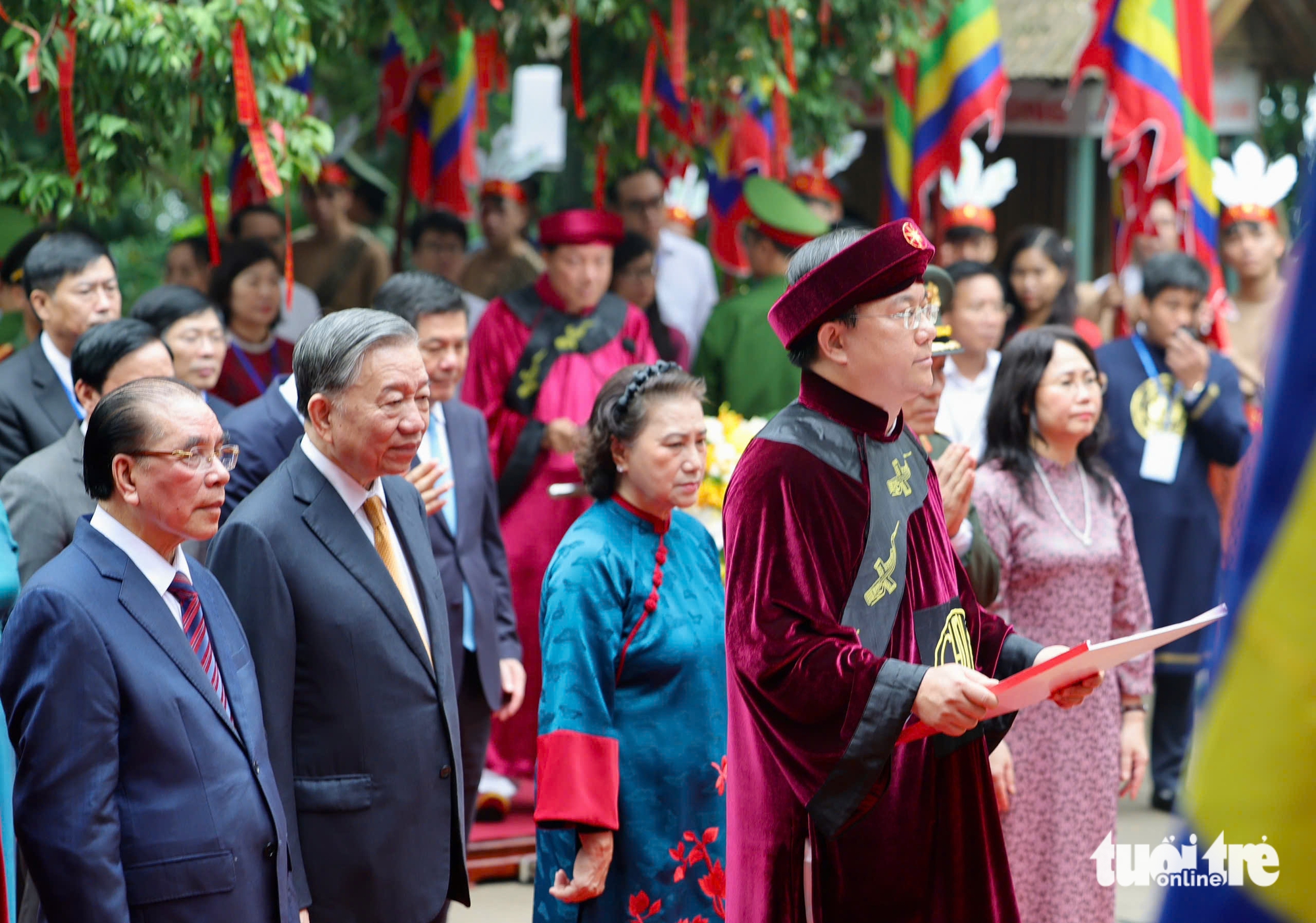 Cùng dự lễ dâng hương có nguyên Tổng Bí thư Nông Đức Mạnh, nguyên Chủ tịch Quốc hội Nguyễn Thị Kim Ngân, Chủ tịch Ủy Ban Trung ương Mặt trận Tổ quốc Việt Nam Bùi Thị Minh Hoài, Đại tướng Phan Văn Giang - Phó thủ tướng, Bộ trưởng Bộ Quốc phòng, Trưởng Ban Tổ chức Trung ương Nguyễn Duy Ngọc, Chủ nhiệm Ủy ban Kiểm tra Trung ương Trần Sỹ Thanh, Trưởng Ban Tuyên giáo và Dân vận Trung ương Trịnh Văn Quyết, Trưởng Ban Chính sách, Chiến lược Trung ương Nguyễn Thanh Nghị, Bộ trưởng Bộ Công an Lương Tam Quang, Bộ trưởng Bộ Ngoại giao Lê Hoài Trung… cùng đại diện lãnh đạo các bộ, ngành, địa phương và tỉnh Phú Thọ.
