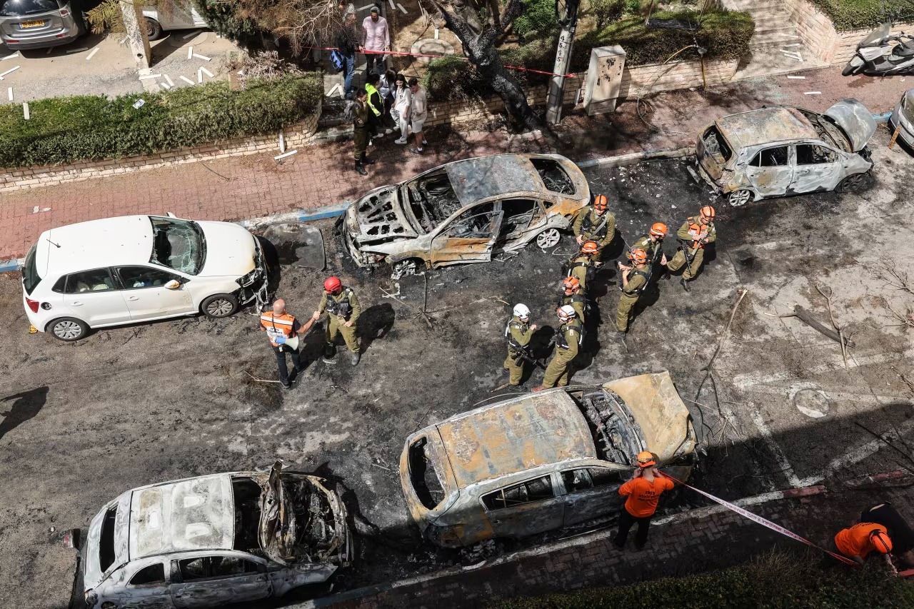 Hiện trường sau cuộc không kích của Iran vào Petah Tikva, Israel ngày 31-3 - Ảnh: AFP