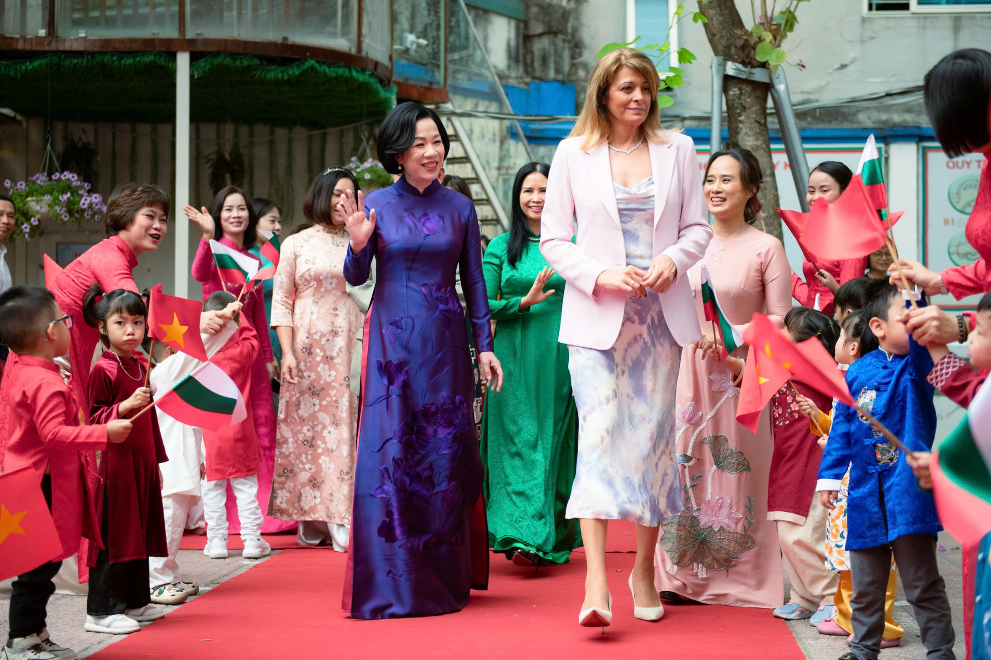 Phu nhân Chủ tịch nước Lương Cường và Phu nhân Tổng thống Bulgaria thăm trường mầm non Việt - Bun khi nhà lãnh đạo Bulgaria thăm Việt Nam tháng 11-2024 - Ảnh: NAM TRẦN