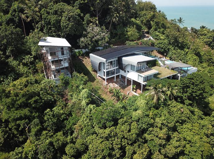 Một trong những biệt thự sang trọng trên sườn đồi ở đảo Koh Samui (tỉnh Surat Thani) bị chính quyền phát hiện vi phạm quy định xây dựng trong cuộc đột kích ngày ngày 24-7-2025 - Ảnh: KHAOSOD