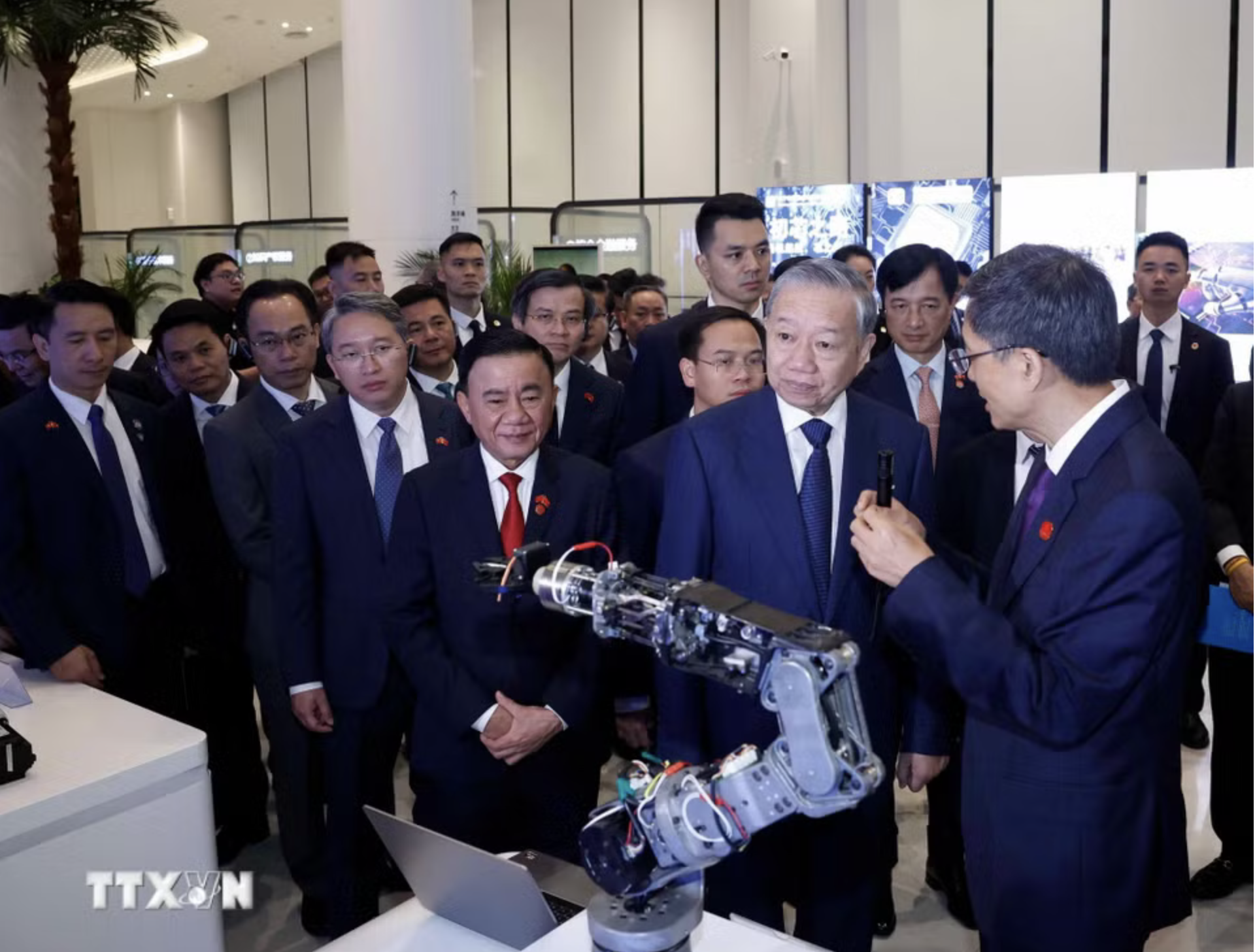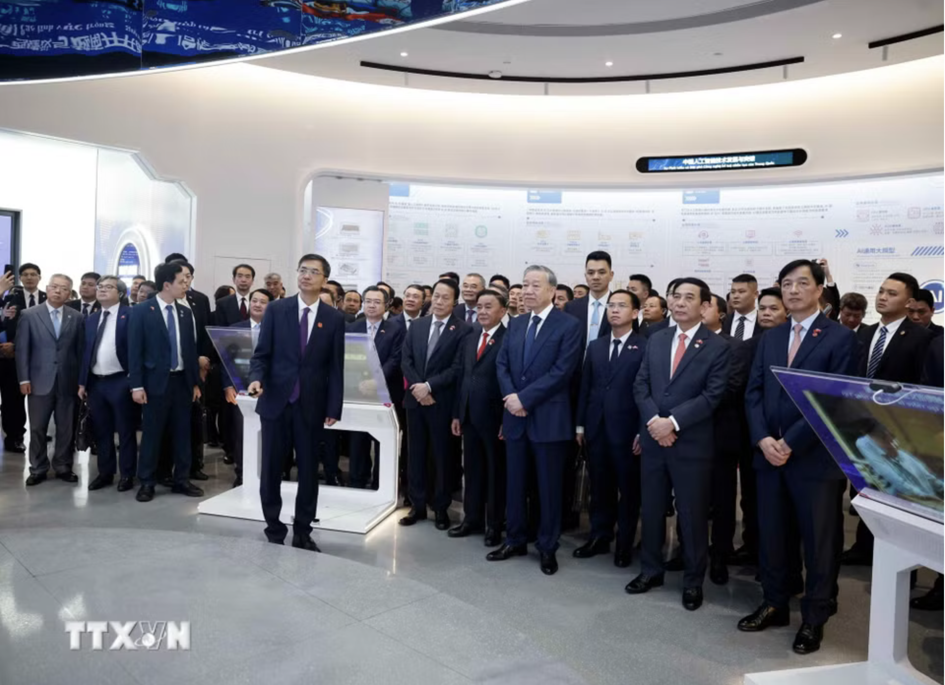 Tiếp tục các hoạt động trong khuôn khổ chuyến thăm cấp Nhà nước đến Trung Quốc, sáng 17-4, tại thành phố Nam Ninh (Quảng Tây), Tổng Bí thư, Chủ tịch nước Tô Lâm và đoàn đại biểu cấp cao Việt Nam đã đến thăm Trung tâm Hợp tác đổi mới trí tuệ nhân tạo Trung Quốc - ASEAN.